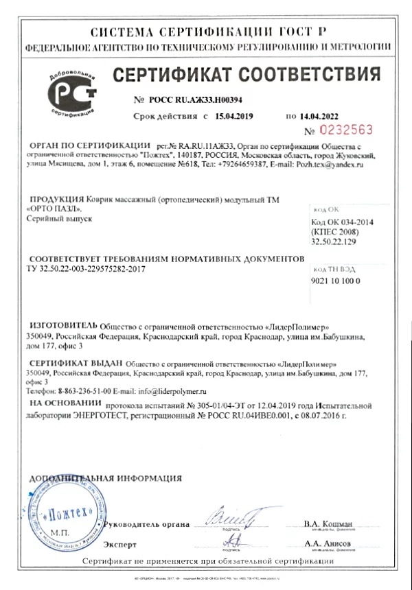 - модуль "Жесткие Шишки" (имитация шишек в лесу с более сильным воздействием на стопу);
